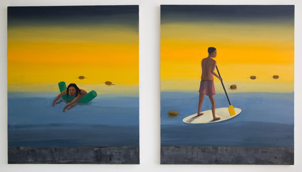 I see my paintings as critical yet humorous portrayal of the social tension between people in banal situations. It is intended for viewers to be able to place themselves in my paintings, and to recognize and relate to not only the figures but also the psychologies of the context of my work.
